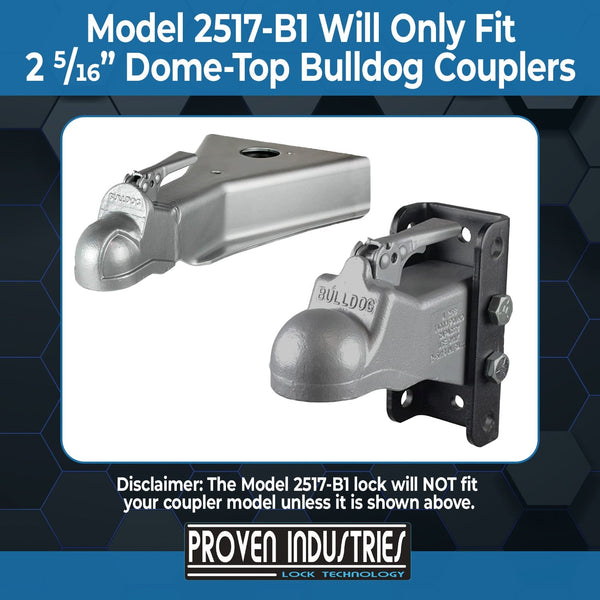 Model 2517-B1 was designed to fit the BullDog style trailer. This style trailer coupler is usually found on enclosed and equipment trailers. In most cases, Bulldog style couplers will be found on commercial trailers, but in some cases trailer manufacturers offer Bulldog couplers on non-commercial trailers as an upgrade.