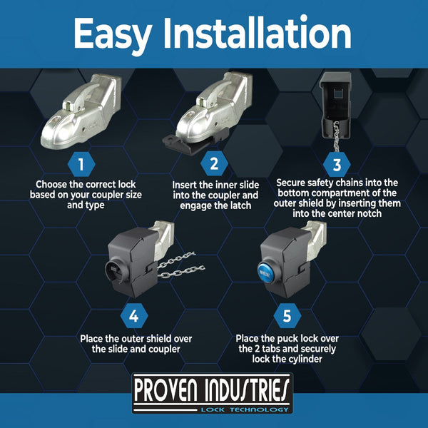Designing the best coupler locks is not an easy task. We pride ourselves on producing a "glove like" fit coupler lock. Rest assured that Proven Industries trailer lock products will leave you with simply the best coupler lock on the market.