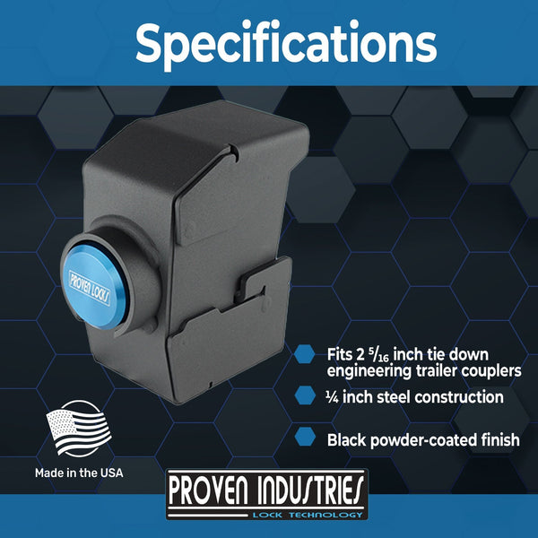 Model 2517-TE1 was designed to fit 2 5/16" Tie Down Engineering Trailer Couplers. With such a high demand for a way to secure these types of trailers Proven Industries stepped up and developed the only high security lock on the market for this coupler type. This mode was made specifically for Tie Down Engineering couplers with a trigger latch and will work with or without surge brakes. This style coupler is most commonly found on boat trailers but can sometimes be found on other trailers. Please refer to our Coupler index below, if you do not see your coupler listed please contact us to ensure you receive the correct lock.