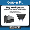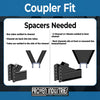 **Optional Spacer Kit includes four custom cut, off-center spacer plates. The plates are to be installed under the locking plate (side with the puck) and are required on certain trailer configurations. Not all trailers require the use of spacers, see the images for our guidelines on typical trailer coupler setups that require the use of spacers, or contact our customer service team and we'd be happy to help! The spacer kit also comes with longer bolts to accommodate the extended span. Note that the use of spacers when not required will not affect the function of this lock, and is perfectly acceptable.